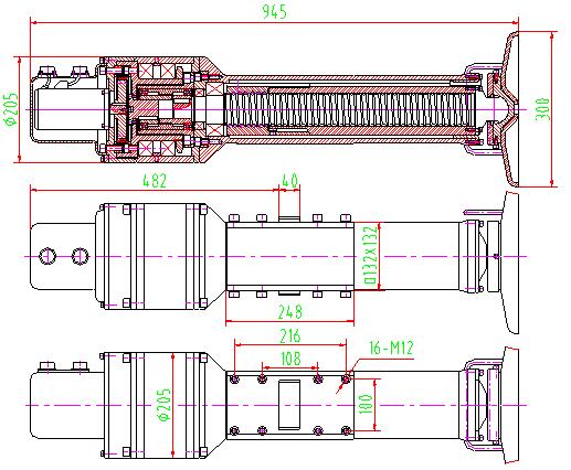 四腿车载机电式自动调平系统撑腿外形安装尺寸如图8所示