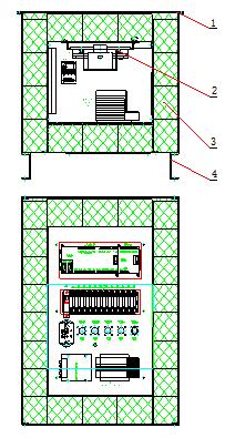 1——抑爆箱 ;2——电控箱 ;3——抑爆材料 ;4——安装座 。